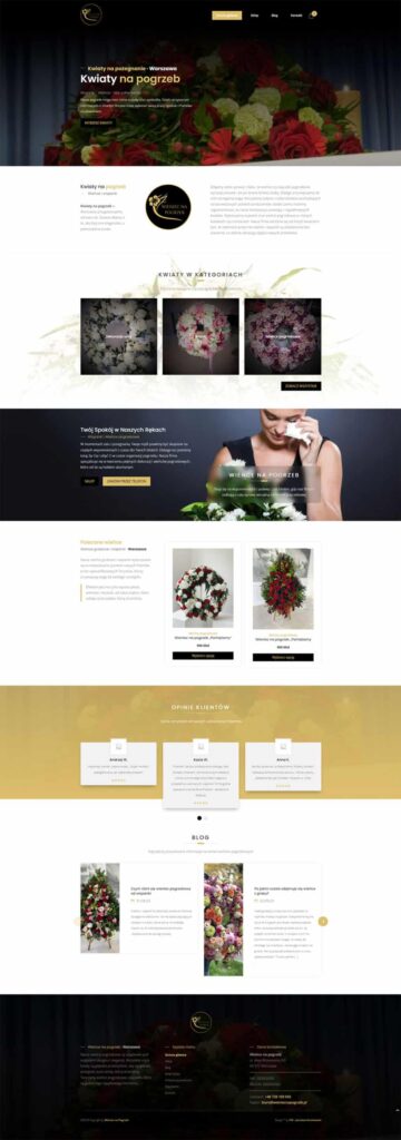Sklep internetowy stworzony dla firmy z Warszawy • Wieńce na Pogrzeb. Indywidualnie przygotowana szata graficzna do potrzeb Klienta, jak również karty produktowe rozbudowane o dodatkowe pola wprowadzania niezbędnych informacji.