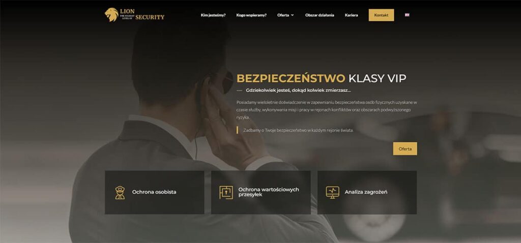Strona internetowa stworzona dla agencji ochrony • Lion Security Warszawa