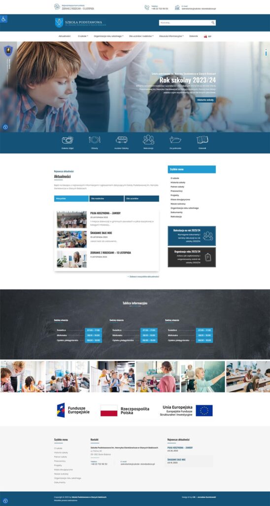 Strona internetowa stworzona dla Szkoły Podstawowej w Starych Babicach • Strona wykonana na systemie WordPress • Nowoczesne rozwiązania • Aktualności • Wydarzenia • Galeria zdjęć