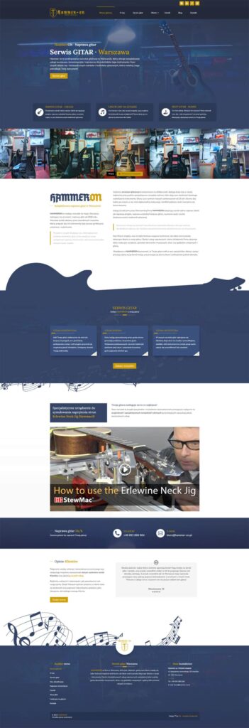 Strona internetowa przygotowana dla serwisu gitar w Warszawie, której głównym profilem działalności jest naprawa gitar, skup oraz nauka gry na gitarze.