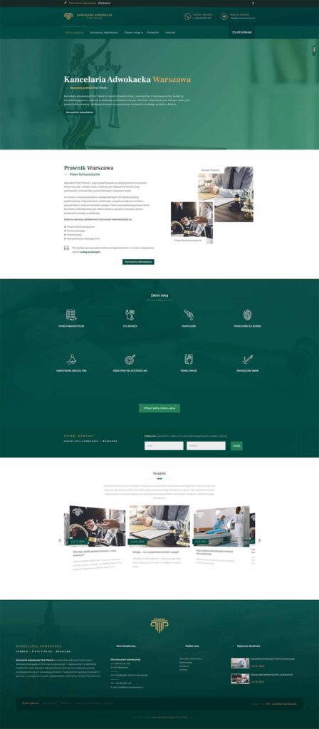 Strona internetowa stworzona dla Kancelarii Adwokackiej z Warszawy Piotr Pirecki • Strona wykonana na systemie WordPress + Blog + formularze kontaktowe + portale społecznościowe + opinie.
