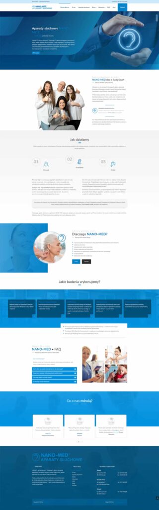 Strona internetowa stworzona dla gabinetu protetyki słuchu • NANO-MED w Sieradzu • Strona wykonana na systemie WordPress + Blog + formularze kontaktowe + portale społecznościowe + opinie.