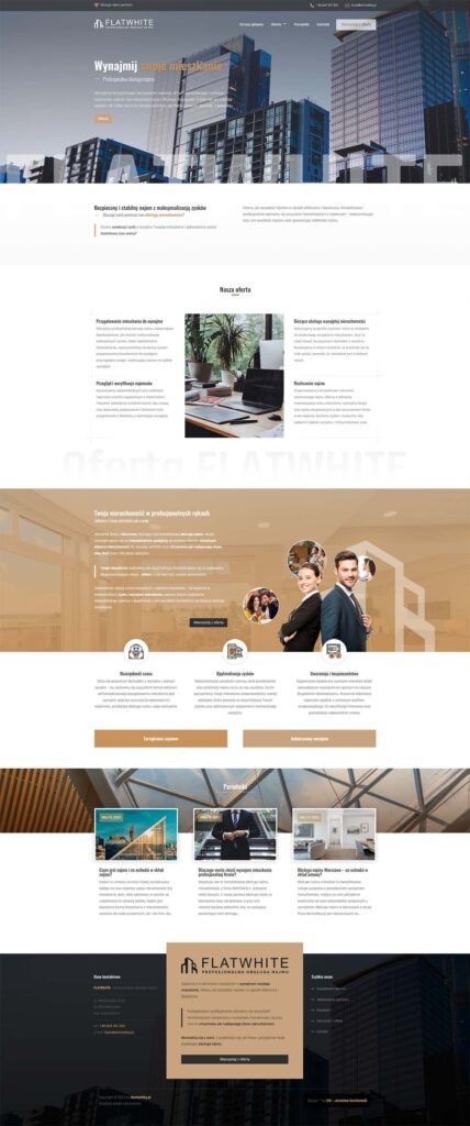 Strona internetowa wykonana dla firmy z Warszawy FlatWhite – Profesjonalna obsługa najmu.