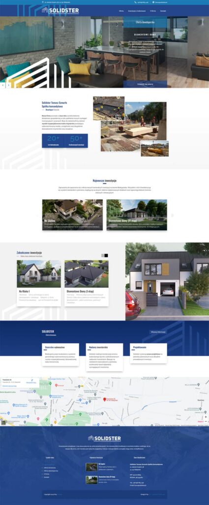 Strona internetowa stworzona dla Dewelopera Solidster z Białegostoku • Strona wykonana na systemie WordPress + BLOG + Realizacje nieruchomości + Formularze.