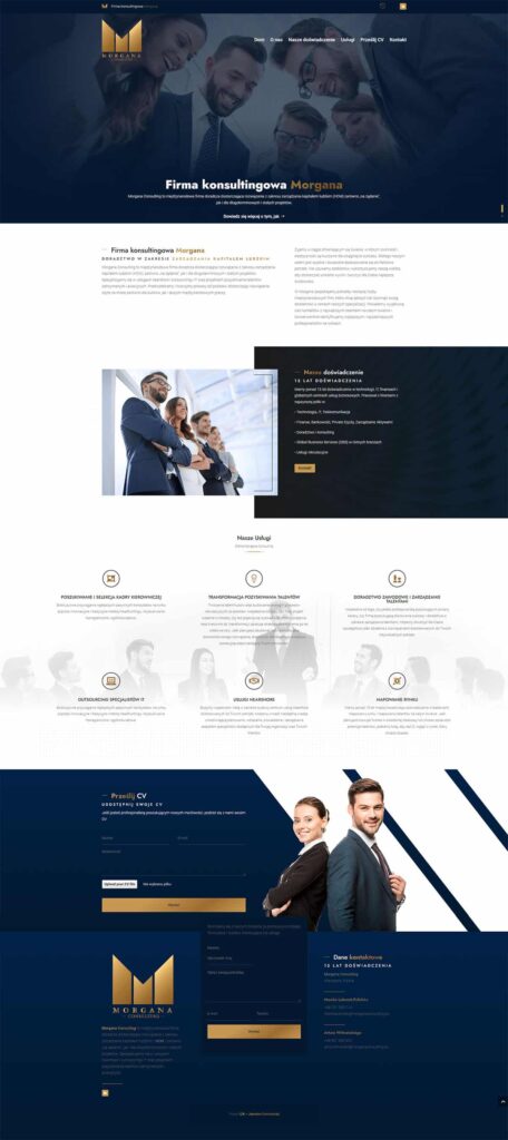Strona internetowa dla firmy Morgana Consulting z siedzibą w Warszawie, której głównym zakresem działalności jest doradztwo w zakresie zarządzania kapitałem ludzkim.