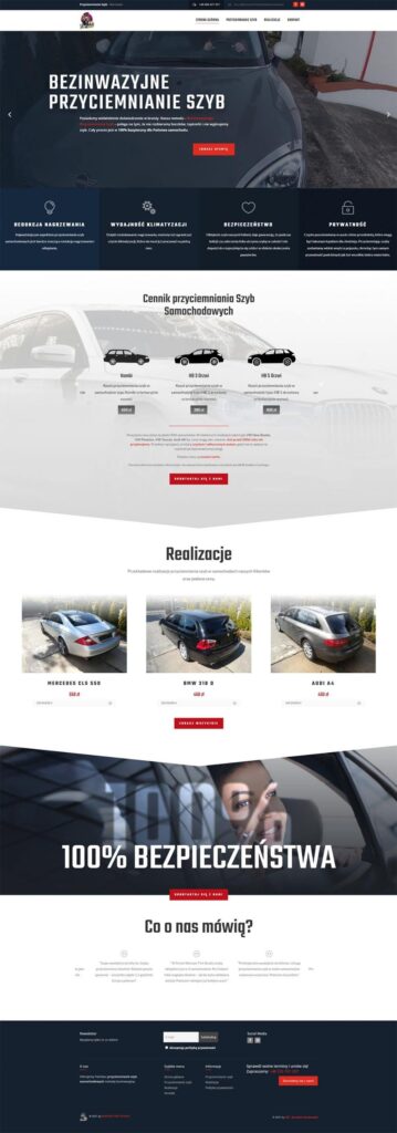 Strona internetowa stworzona dla firmy Warsaw Tint Studio • Strona wykonana na systemie WordPress + Blog + formularze kontaktowe + portale społecznościowe + opinie.