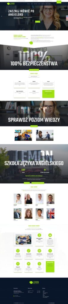 Strona internetowa stworzona dla szkoły nauki języka angielskiego w Warszawie LEMON • Strona wykonana na systemie WordPress + Blog + formularze kontaktowe + portale społecznościowe + opinie.