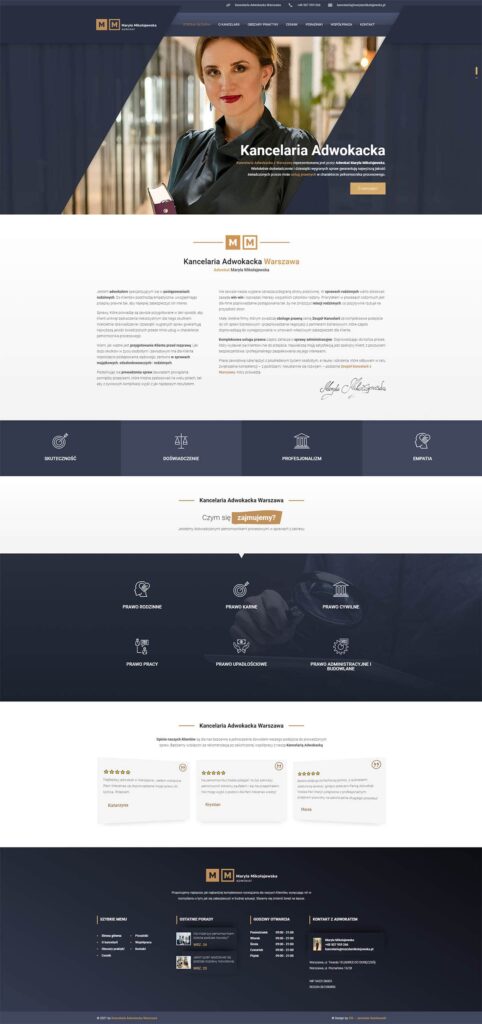 Strona internetowa stworzona dla Kancelarii Adwokackiej z Warszawy Maryla Mikołajewska • Strona wykonana na systemie WordPress + Blog + formularze kontaktowe + portale społecznościowe + opinie.