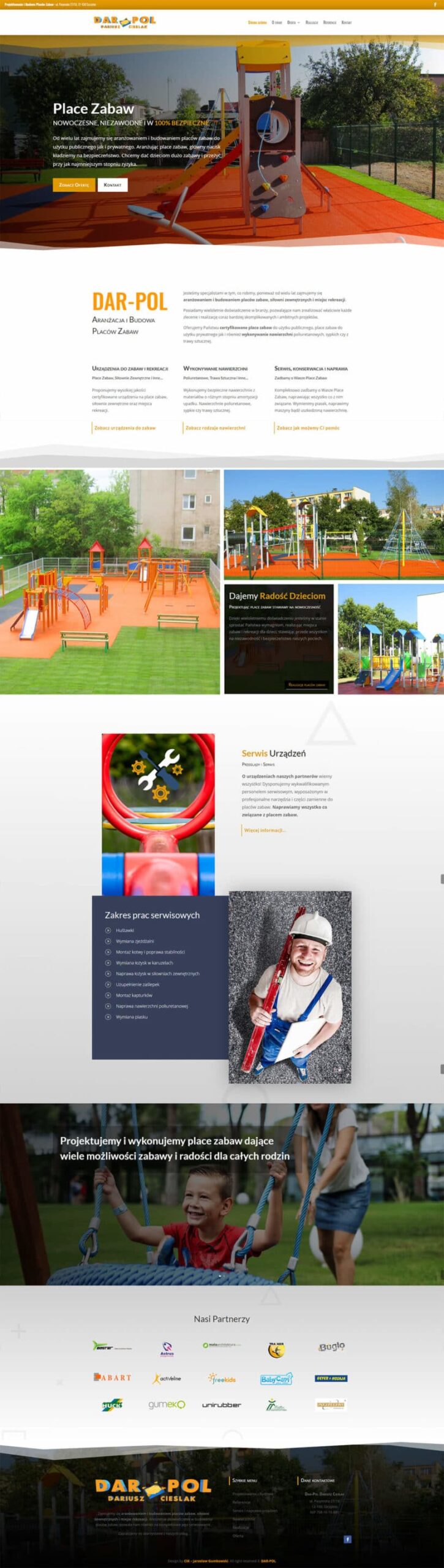 Strona internetowa dla firmy Dar-Pol z siedzibą w Szczytnie • Firma zajmuje się projektowaniem i budową placów zabaw oraz otwartych miejsc rozrywki.